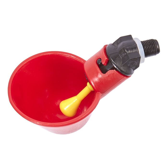 A cleaner option than the gravity-fedy fed drinker, while maintaining that natural inclination to drink from a pool of water. You can mount these into a bucket, pipe, bottle, etc, which makes them more versatile, but also a bit of a DIY. You can make a high-compacity drinking system fairly cheap with these. They also have a tendency to leak if not installed perfectly. Pre-made systems don't normally leak but are expensive in comparison to other drinkers of similar volume.