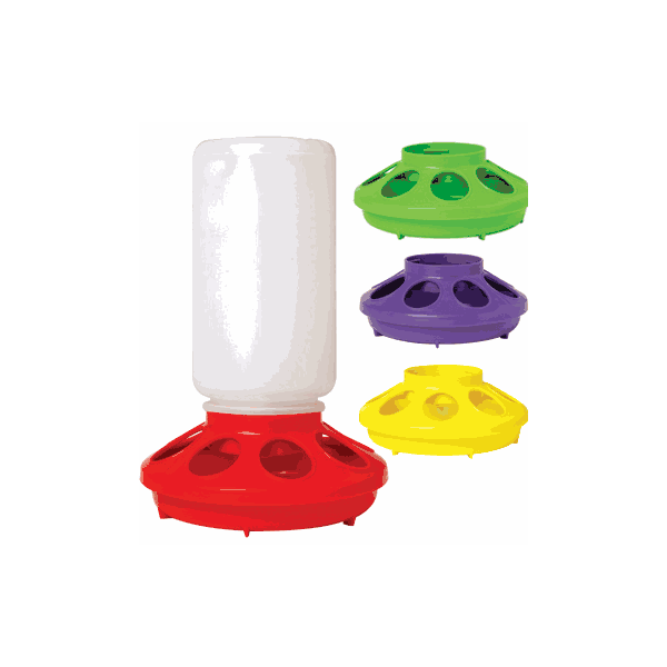 The most common option, they are very cheap and accessible. Depending on the depth of the bottom plate, you may need to fill the bottom with rocks/marbles to prevent chicks from getting wet. The base is more likely to get dirty than other options. If you use this option, we recommend elevating to the chick's chest height to prevent litter and debris from getting in the water.